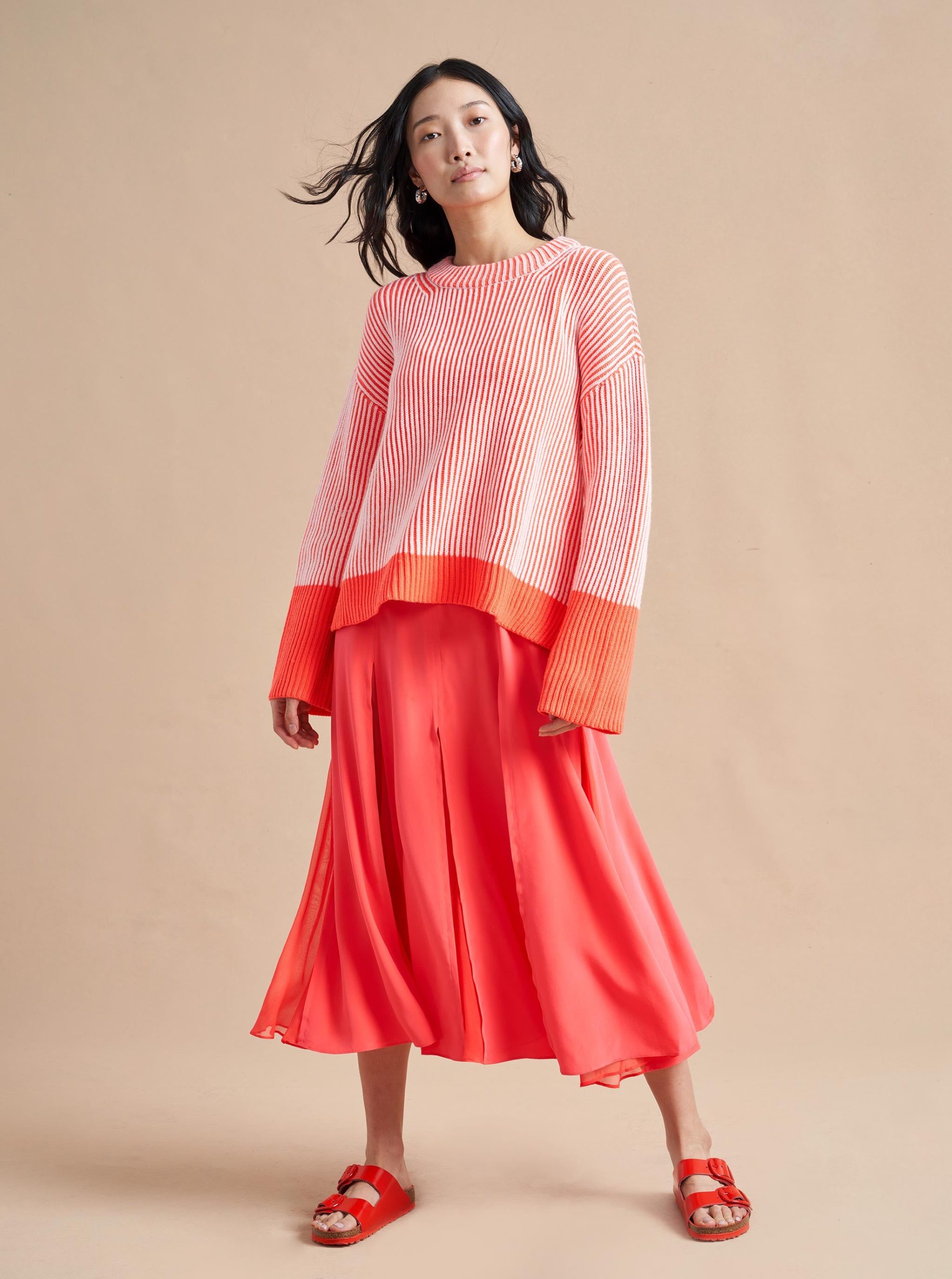 She’s back! We have revamped our favorite “Anytime. Anywhere. Anyplace.” Sweater with our signature two-color rib (customers have been known to wear it inside out) in deliciously soft, 100% merino wool with our favorite oversize fit kept in tact.
