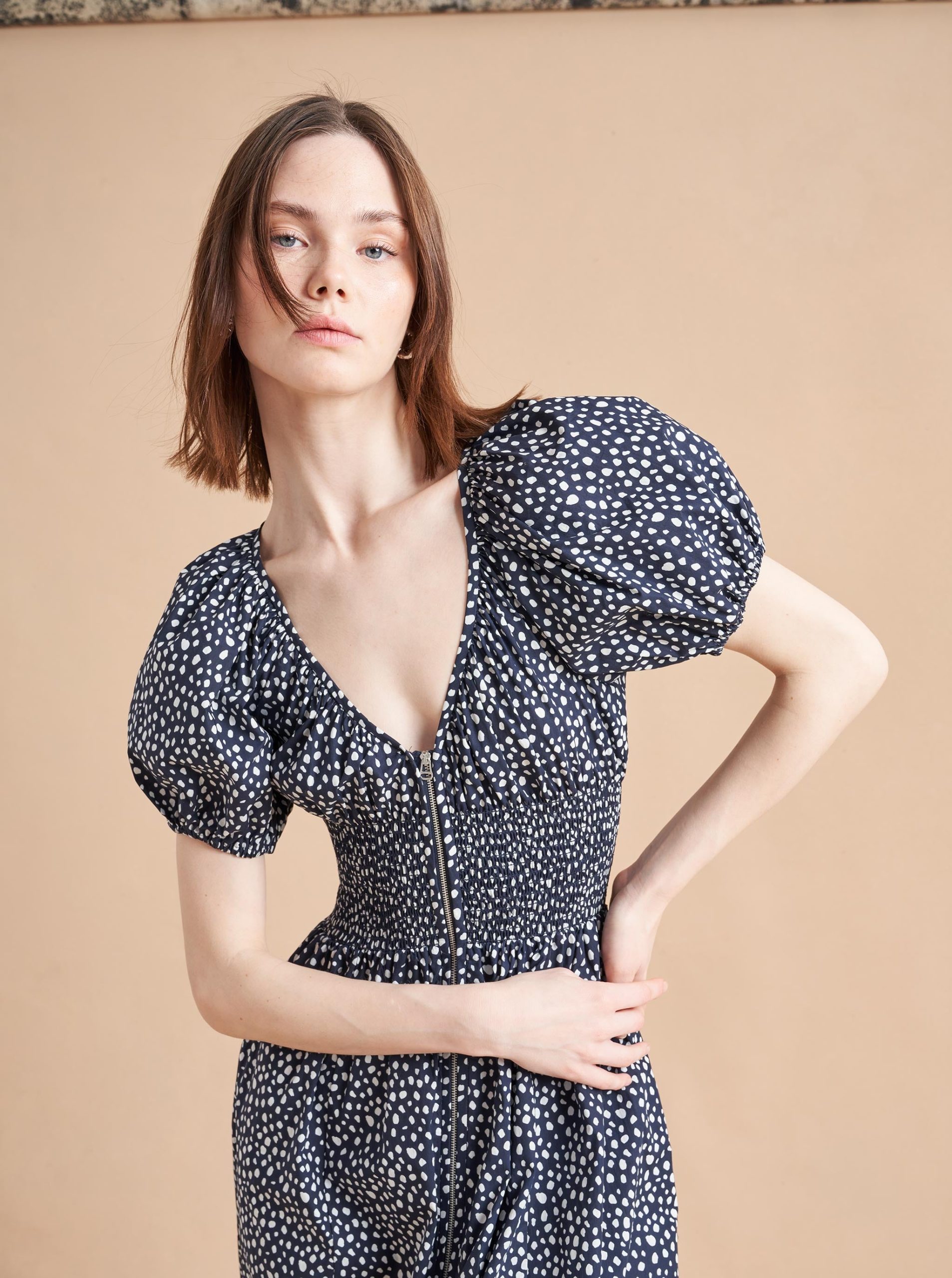 What if we made a dress with all of our favorite things? Meet Celina, our romantic yet sporty, smocked waist, puff sleeve, v-neck, must-have dress featuring a tulip skirt with pockets and a two-way zipper to show as little or as much skin as you like? Did we miss anything?