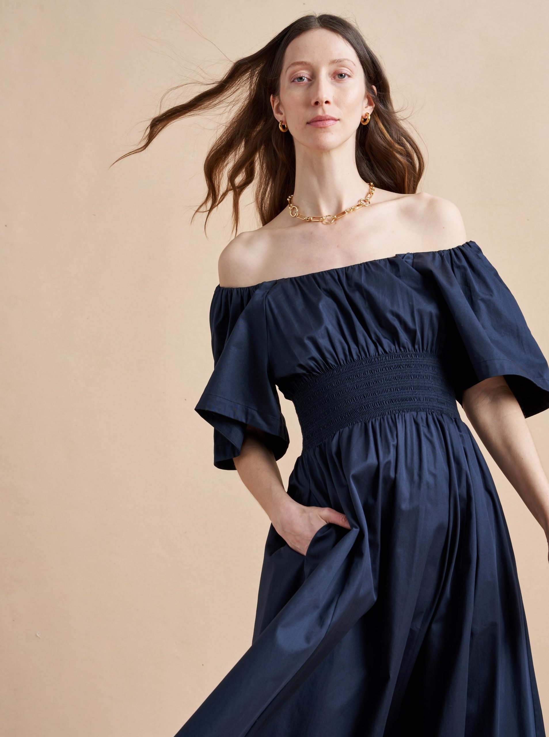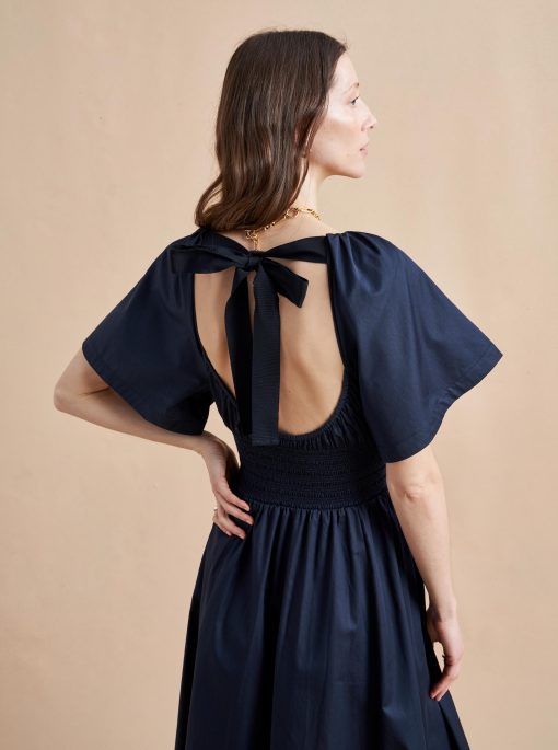 Sometimes the chicest option is also the easiest. Meet Claire, our ruffle sleeve, open (yet bra-covering) back dress with smocked waist for ease has side seam pockets and a full skirt so as minimal as looks, she still delivers on a dramatic entrance (or exit).