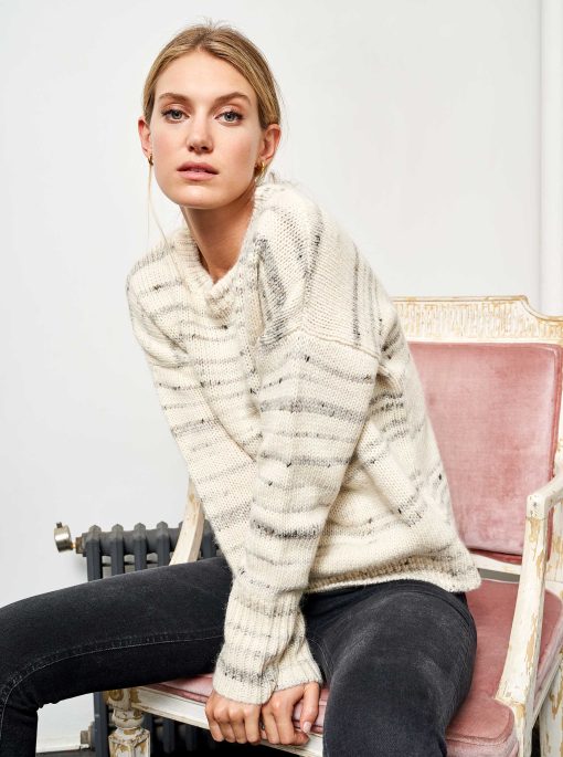 Get on board and stay warm with our oatmeal and cream mélange stripe wool-blend sweater. Function and style, not mutually exclusive.