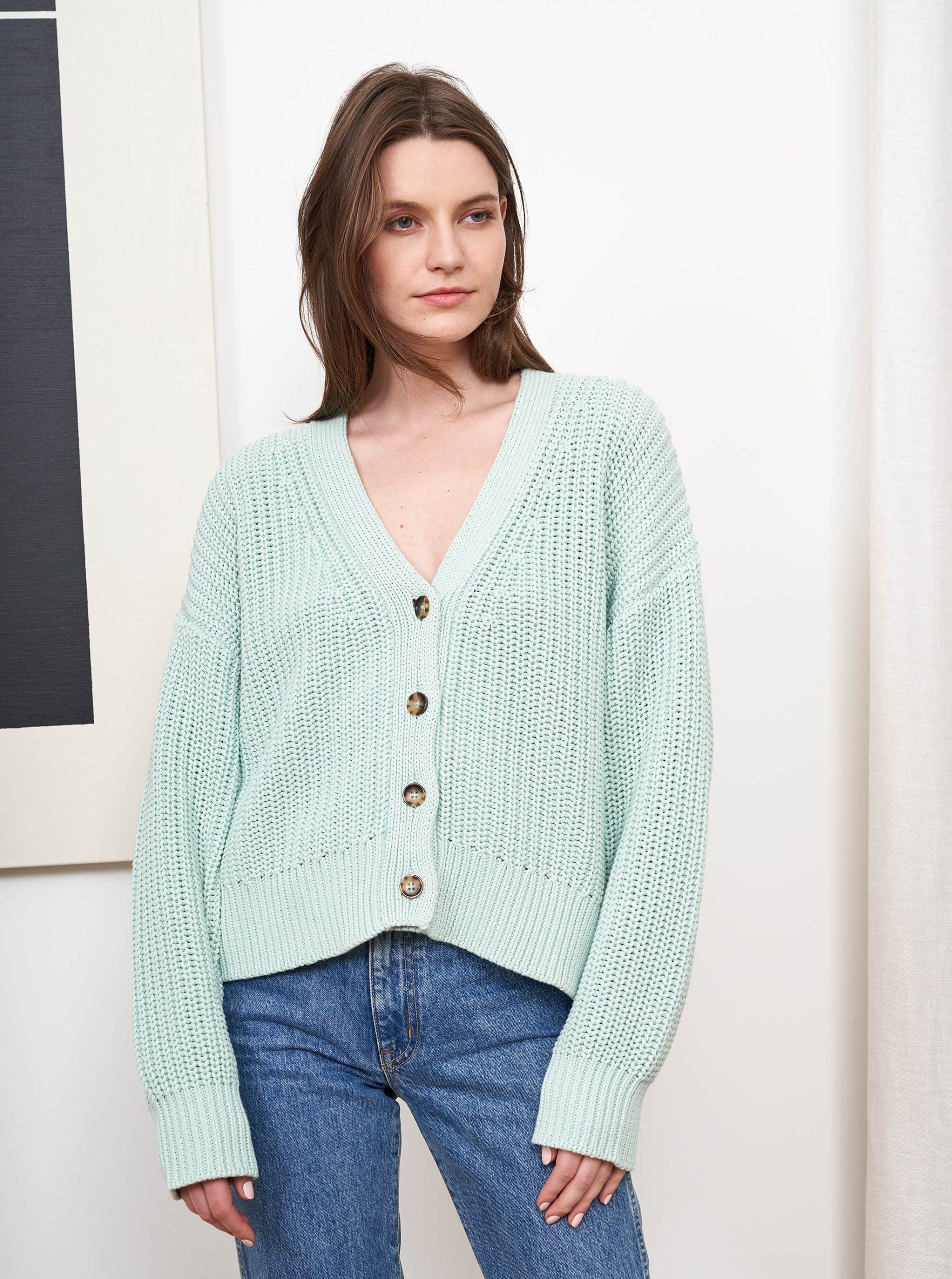 Life can be a picnic so why not dress for it in this deliciously chunky, cotton cardigan. Layer over our Lean Lines Tee or add a reveal by pairing it over one of our tanks, you can’t go wrong when your mood is as light as this knit.