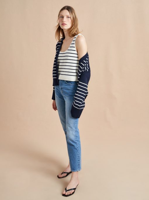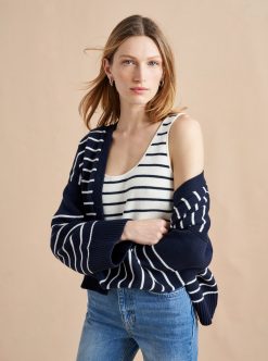 No wardrobe is complete without a classic striped tank whether you pair it back to your favorite jeans or trousers, our Sailor Tank is the perfect all-year round closet staple. And in case you were wondering what to wear it with, check out the matching Sailor Cardigan.