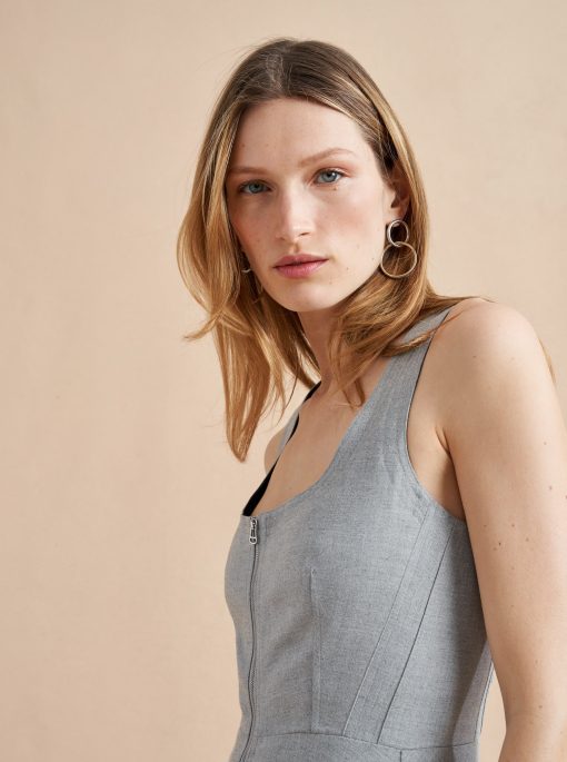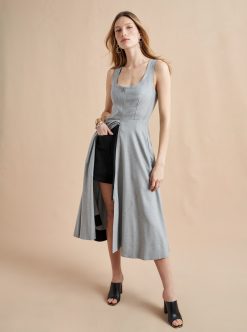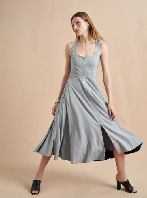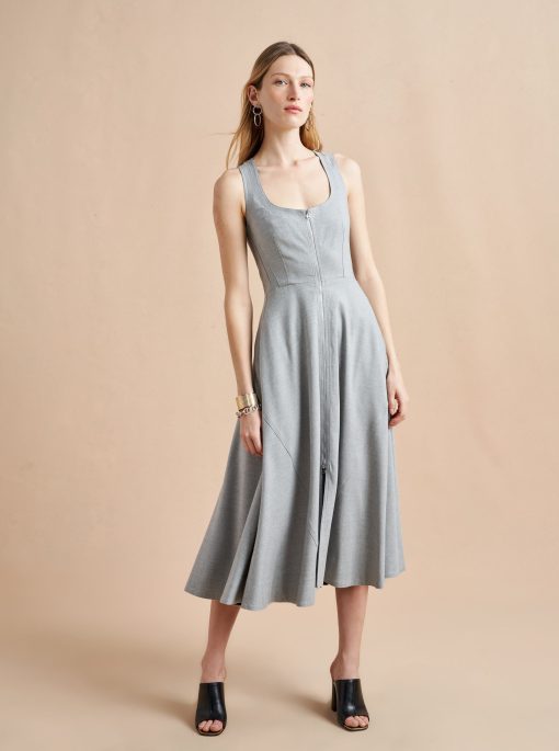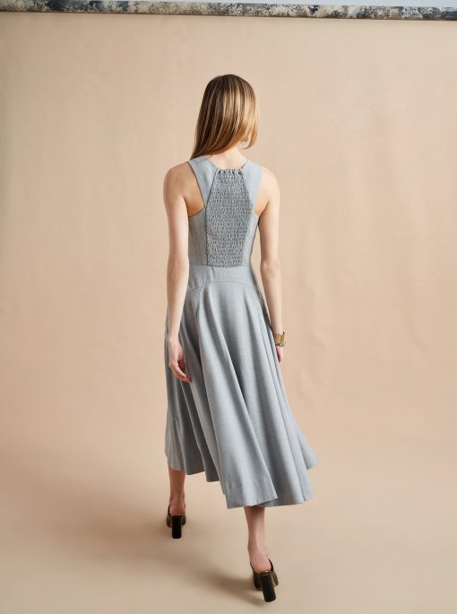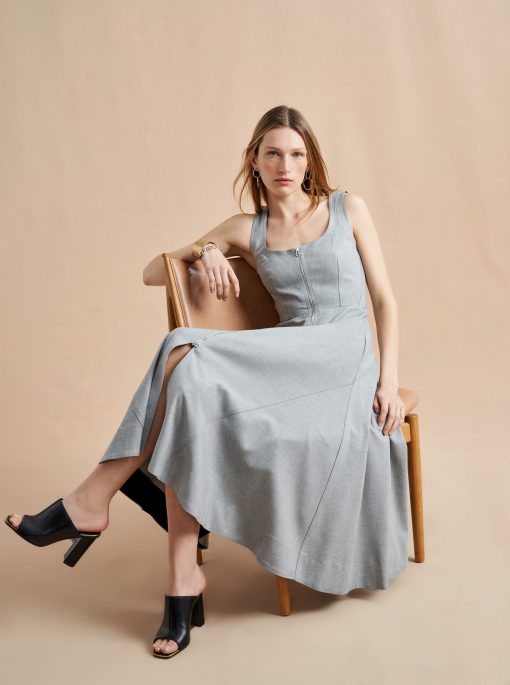 Inspired by La Bande member Selby Drummond, this grey, sleeveless dress with smocked back for ease and a two way zipper to show as little or as much décolleté (or leg) is where comfort meets chic. Elevated with a hint of sport, feel free to run away with this dress in a flat boot or simply strut into a room when you wear it with heels. Just like Selby, there is nothing this dress can’t do.
